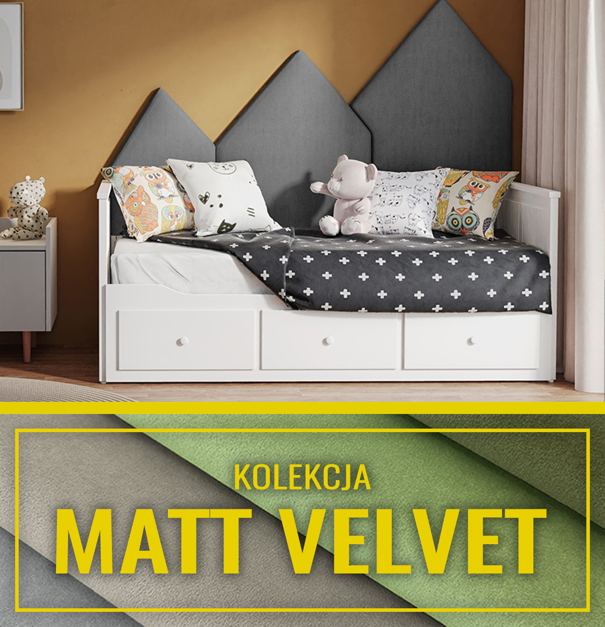 • Miękkie zagłowie łóżka, zapewniające komfort i wygodę.