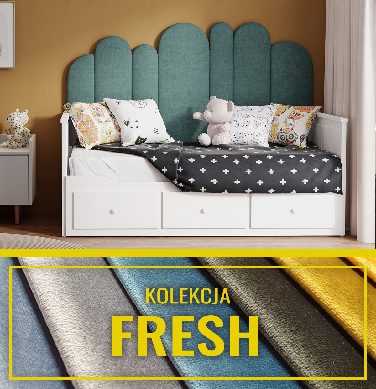 • Miękkie zagłowie łóżka, zapewniające komfort i wygodę.