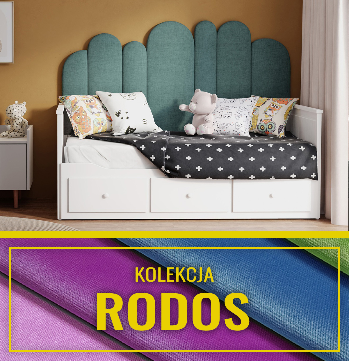 • Miękkie zagłowie łóżka, zapewniające komfort i wygodę.